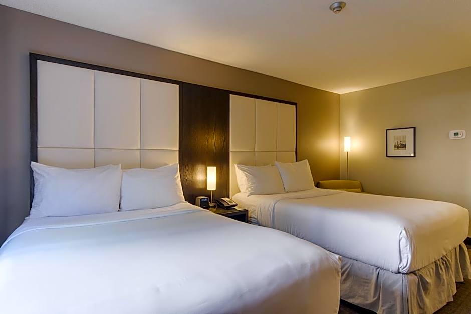 This room features a flat-screen TV with cable channels. Additional amenities include a Keurig coffee machine, and mini-fridge. The bathroom contains a hairdryer and complimentary toiletries. This room with 2 double beds can accommodate a maximum of 4 people and cannot accommodate a cot.
